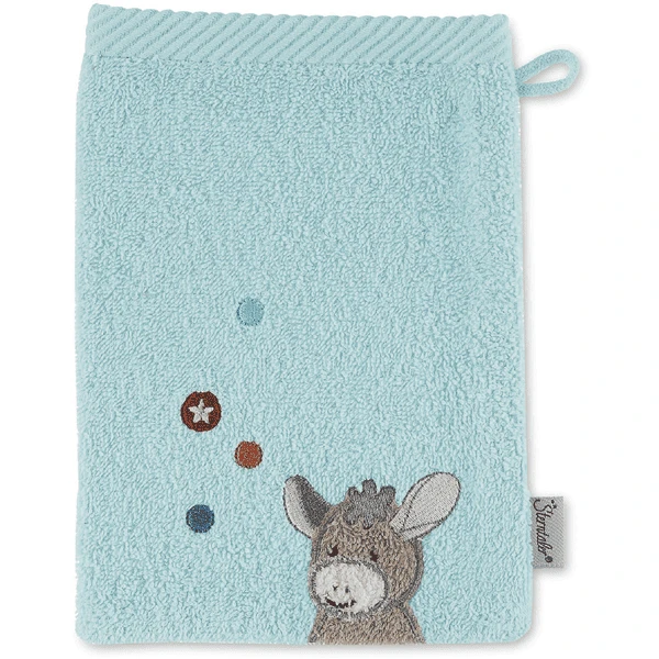 Der Waschhandschuh aus Frottee mit appliziertem Stickmotiv Esel Emmi garantiert