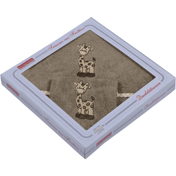 WÖRNER SÜDFROTTIER Set Kapuzenbadetuch und Waschhandschuh Giraffe hellbraun 80 x 80 cm